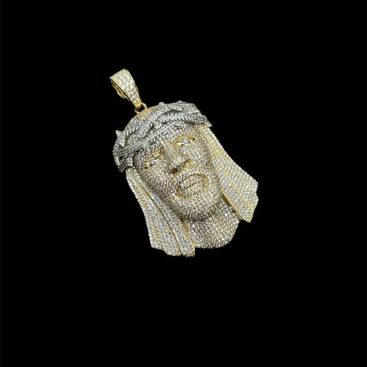 3D Jesus Piece / 14K Gold Swarovski Stones