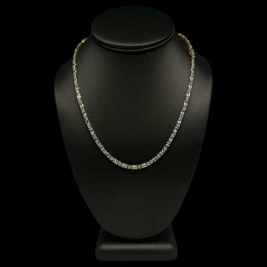 Round & Baguette Cut Tennis Chain 3mm Gold