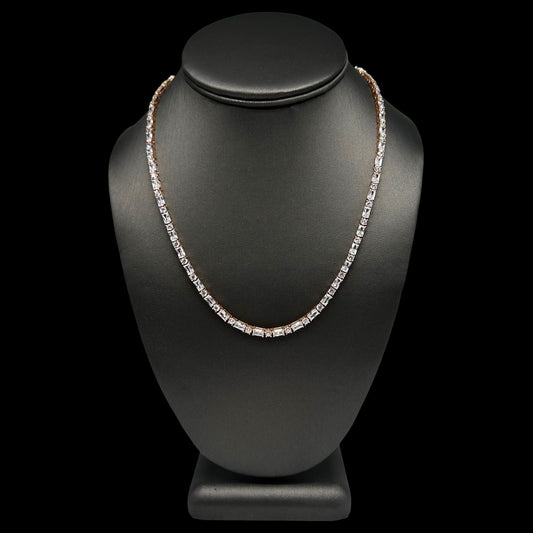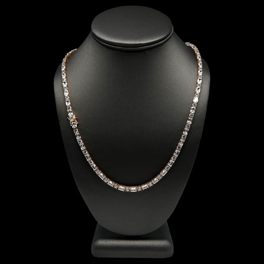 Round & Baguette Cut Tennis Chain 4mm Rose Gold