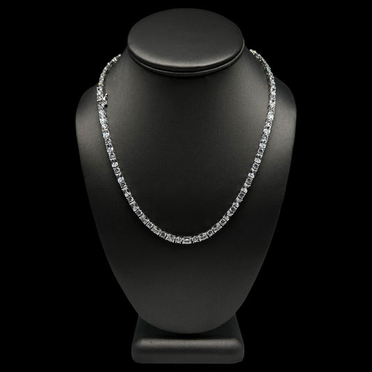 Round & Baguette Cut Tennis Chain 3mm Silver