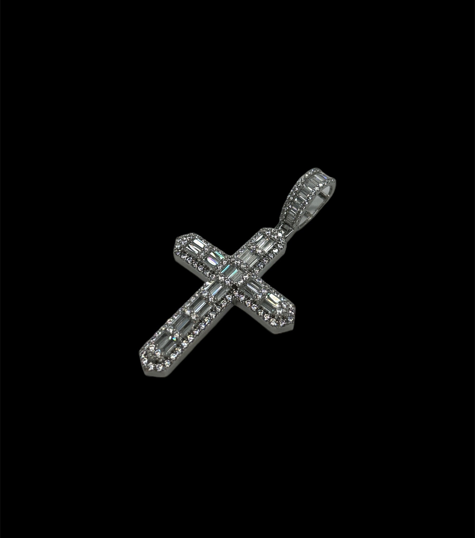 Baguette Cut Cross Silver