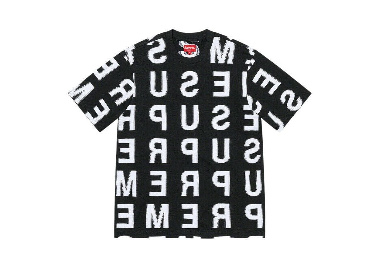 Intarsia Script Shirt S/S Top Black